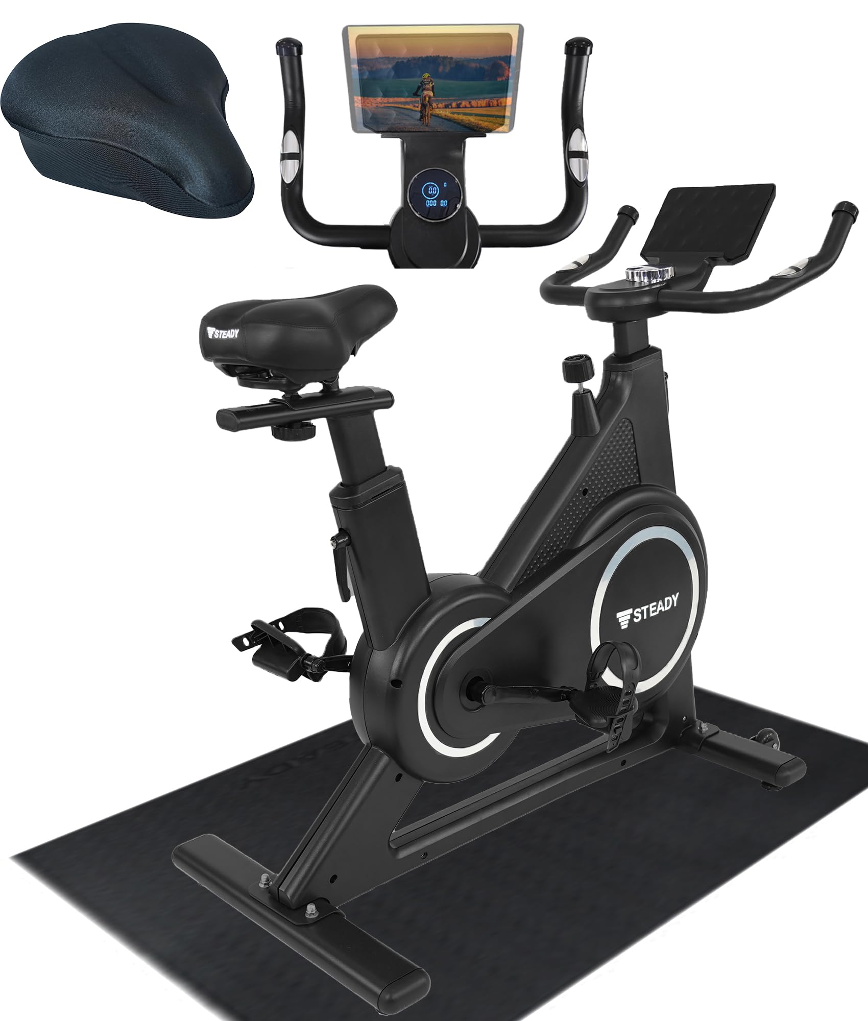 2021年5月の販売開始から累計13,000台超の販売実績を誇り、楽天市場でレビュー平均★4.4を獲得している(※2023年10月11日時点)「STEADY スピンバイク」の静音性とシームレスな負荷調節はそのままに、「バーチャルサイクリングアプリとの連携」・「機能性と美しさを両立したデザイン性」・「最大120分の長時間稼働」の3つを“Plus”した進化モデルが誕生しました。