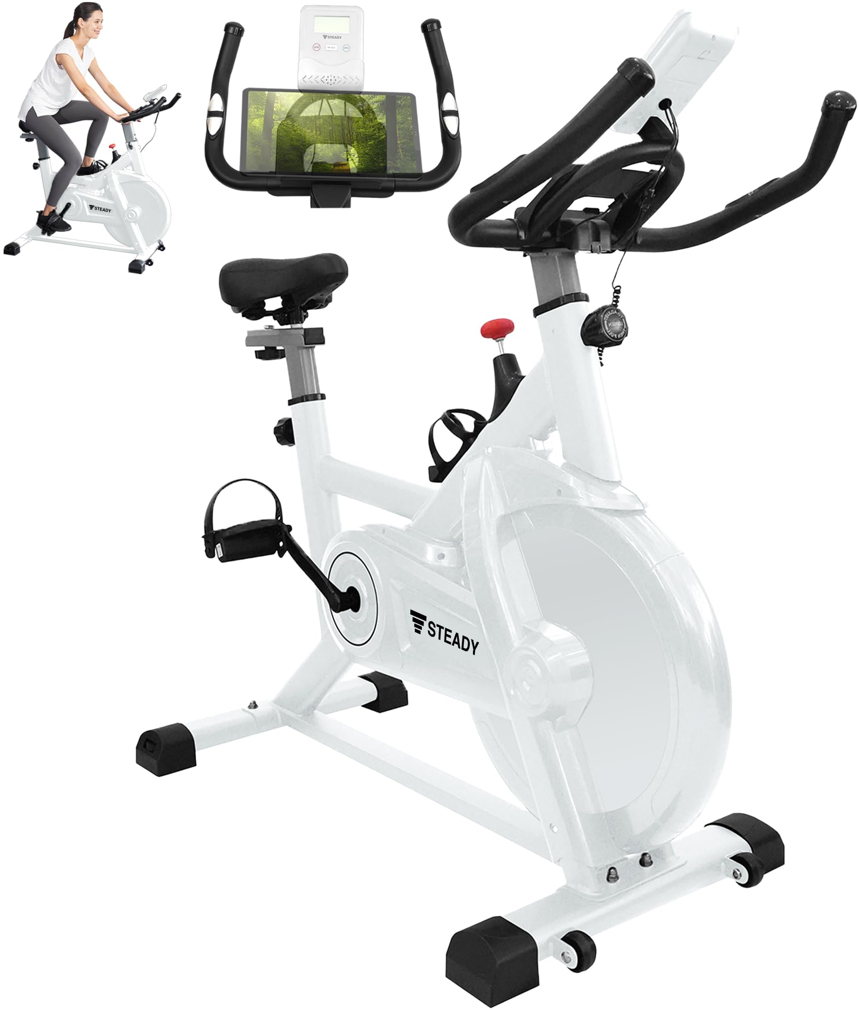 わかりやすい取扱説明書が付いているほか、組立て解説動画もYouTubeにて公開中(「STEADY スピンバイク 組立て」でご検索ください)。また前輪部に設けたキャスター「smoothy rim」により、マットを敷かずとも床を傷つけることなくフィットネスバイク(エクササイズバイク)の移動・設置が行えます。
